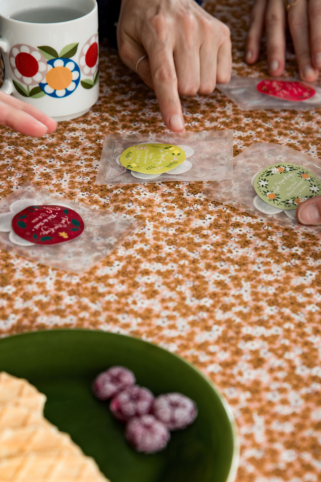 - de 6 sachets de thé (en collaboration avec la marque Tea Heritage de Lyon) avec chacun 1 goût différent sélectionné au hasard parmi : Thé vert Jardin de Casablanca, Thé Noir Earl Grey, infusion Nuit Enchantée, Rooibos Orange Sanguine, Tisane Citron Verveine, Thé Vert Fleur d’oranger, Thé Pumpkin Chaï, Thé de Noël . Sur l’étiquette de chaque sachet, se trouve une phrase positive (sélectionnée par Jolis Lundis) en lien avec le thème choisi (6 phrases différentes par box).