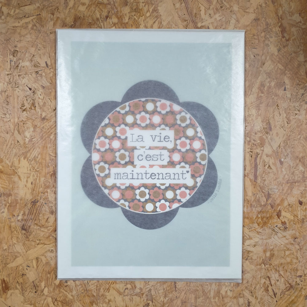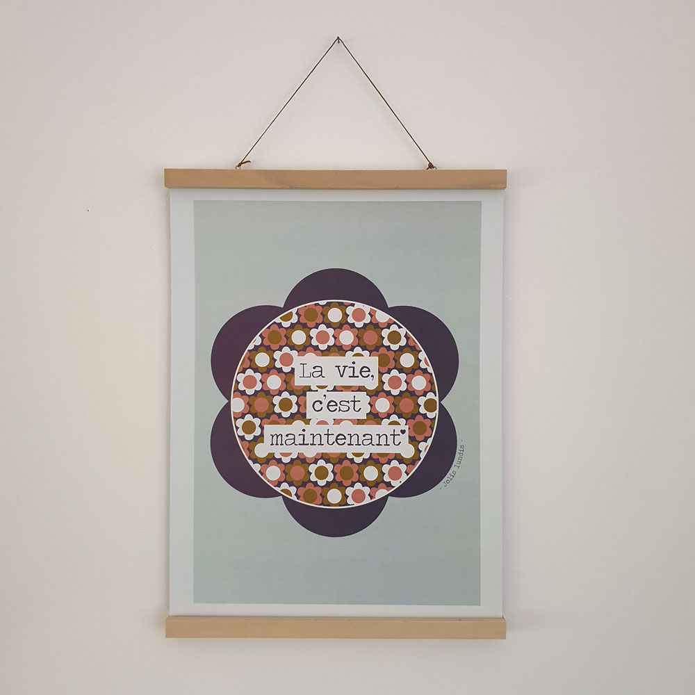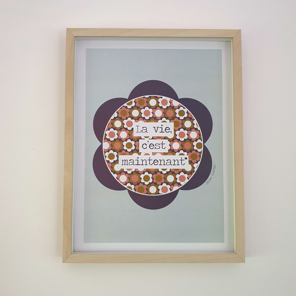 Grâce à la magie des mots, l’affiche «La vie, c’est maintenant», à offrir ou à garder pour soi, agit comme un doux rappel en invitant à se recentrer sur l’instant présent dès que les yeux se posent dessus.